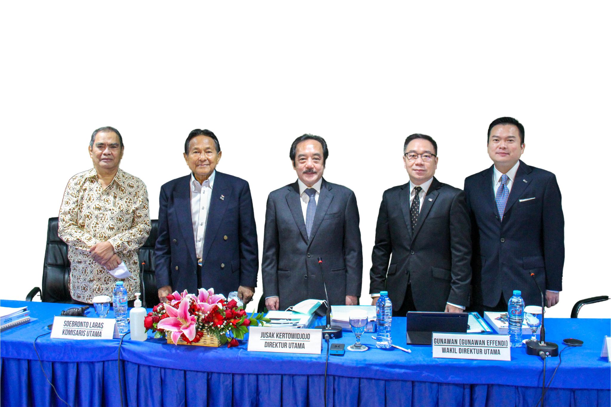 (Dari kiri) Komisaris Independen Agus Hasan Pura Anggawijaya, Komisaris Utama Soebronto Laras, Direktur Utama Jusak Kertowidjojo, Wakil Direktur Utama Gunawan Effendi, dan Direktur Andrew Nasuri.