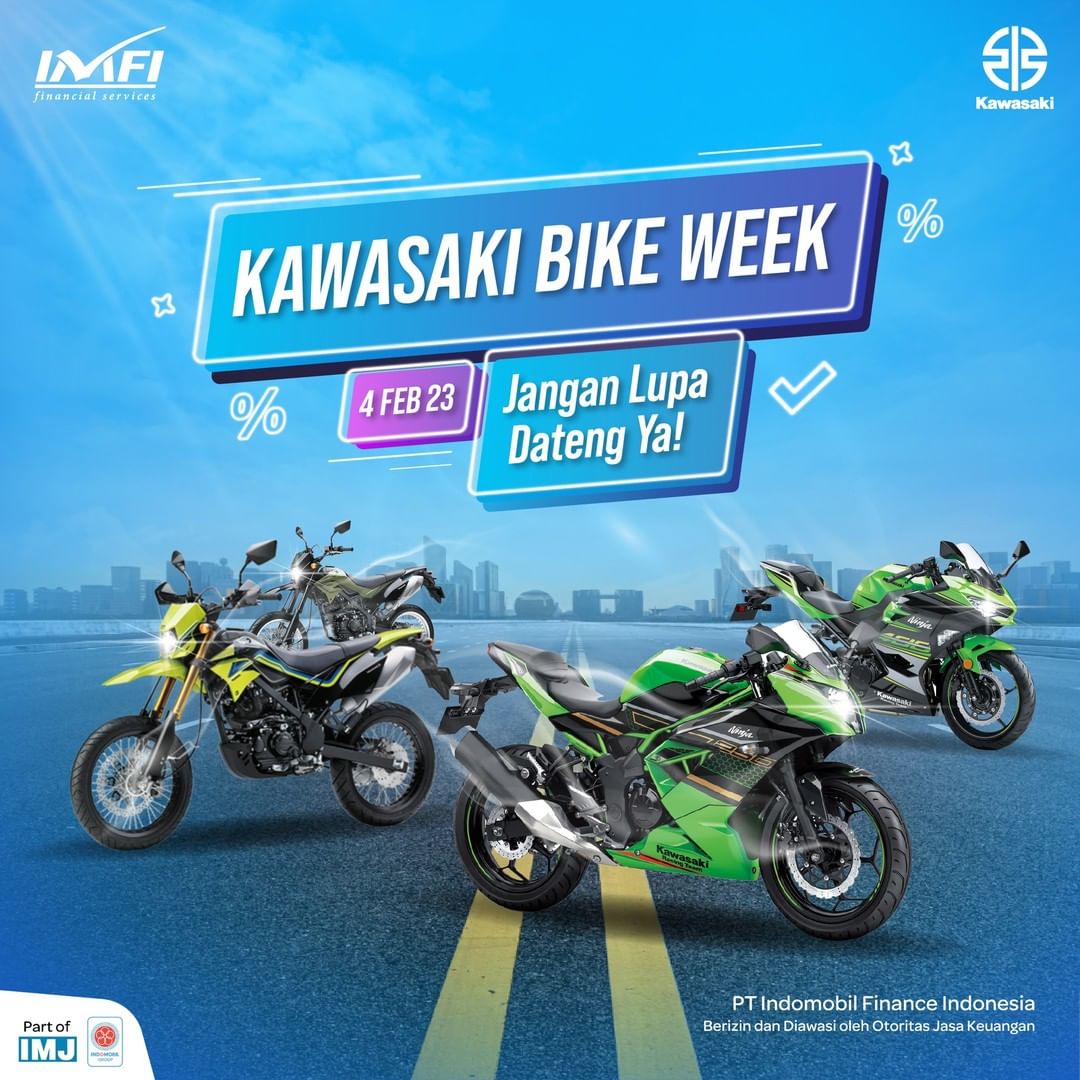 Bagi Anda yang belum sempat mendapatkan promo menarik dari IMFI selama Kawasaki Bike Week 2023, Anda dapat mengunjungi www.imfi.co.id untuk informasi lebih lengkap dan mendapatkan penawaran-penawaran lainnya. Mari wujudkan punya motor Kawasaki impian bersama IMFI.