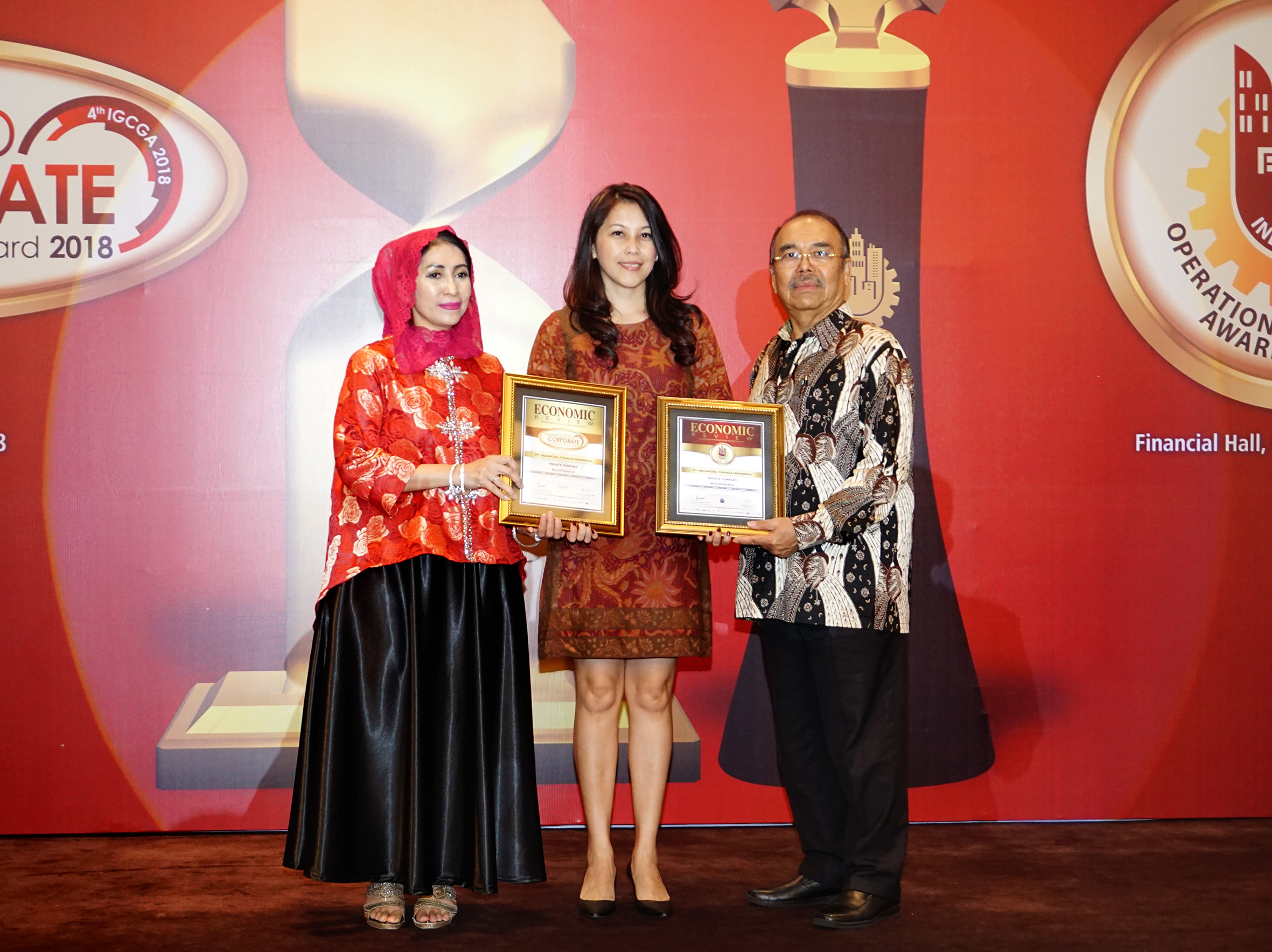 Mengawali November 2018, PT Indomobil Finance Indonesia (IMFI) meraih the Best GCG dan the Best Operational dalam Indonesia Good Corporate Governance Award (IGCGA) 2018 dan Indonesia Operational Excellence Award (IOEA) 2018 untuk kategori Private Company Sector Multifinance dari Majalah Economic Review, 2 November 2018 di Financial Hall, Graha CIMB Niaga, Jakarta. Acara ini merupakan kerja sama Economic Review dengan IPMI International Business School Jakarta, PQI Consultant, dan Indonesia-Asia Institute. Ini merupakan kali ke-3 IMFI menerima penghargaan the Best GCG.
