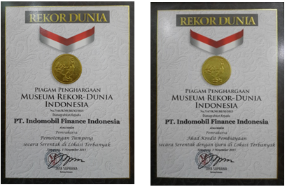 “Kegiatan pemotongan tumpeng dan penandatanganan kontrak kredit yang keduanya dilakukan serentak di 203 dan 202 kantor cabang IMFI menjadikan IMFI mendapatkan 2 (dua) penghargaan sekaligus dari Museum Rekor Indonesia (MURI) berupa Penghargaan Museum Rekor – Dunia, Indonesia untuk “Pemotongan Tumpeng Secara Serentak Di Lokasi Terbanyak danAkad Kredit Pembiayaan Secara Serentak Dengan Guru di Lokasi Terbanyak”, dijelaskan Imelda Pathresia, HRD Manager yang menjadi PIC kegiatan MURI-IMFI